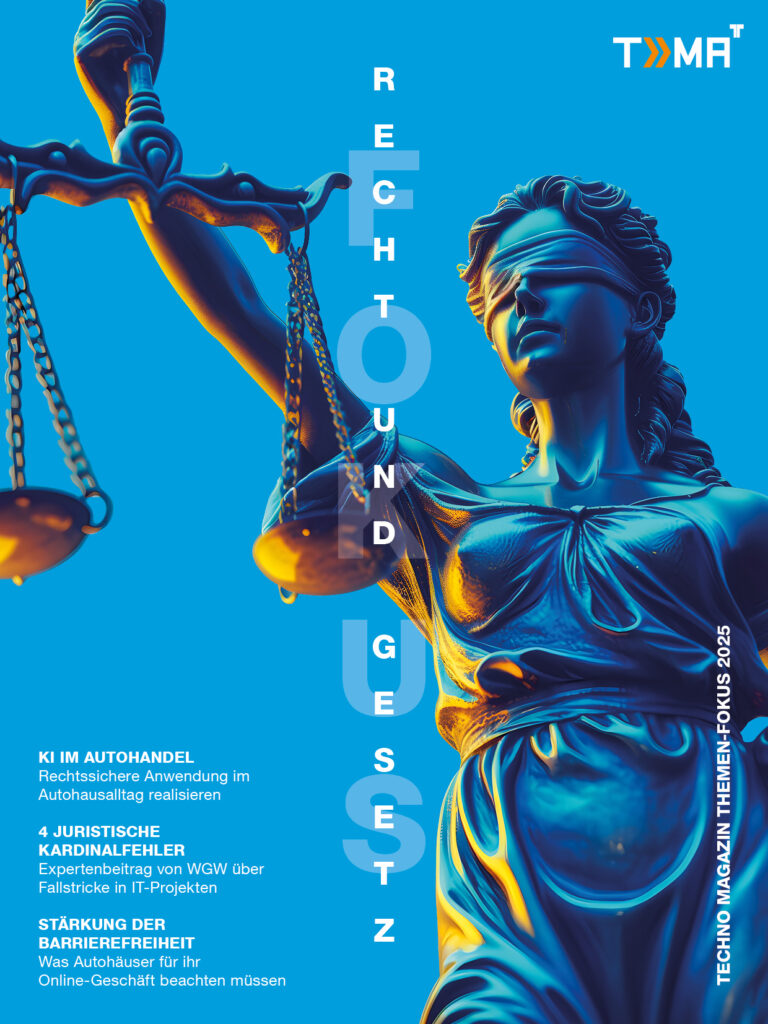 Zusammen mit den Experten der Kanzlei WGW Rechtsanwälte, mit denen TECHNO eng zusammenarbeitet, erörtern wir in dieser Ausgabe zahlreiche aktuelle Rechtsthemen – von KI im Marketing über IT-Verträge bis hin zu den Herausforderungen des Barrierefreiheitsstärkungsgesetzes.